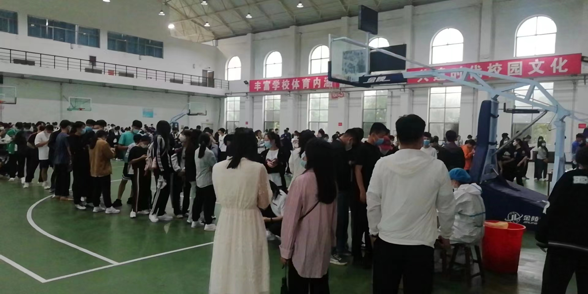 在公司党委书记乔广礼、经理姚丽华的关心指导下,副书记孟琛博、副经理金力、副经理蔡浩刚、学工办副主任孙烨、教学办副主任崔忠磊、18级辅导员王艳利、21级辅导员郭荣娟、21级班主任司钦如始终坚守岗位,带领员工志愿者配合医护人员做好组织管理、入口指引等工作,为学院师生安全保驾护航。学院领导老师带领员工志愿者每次提前20分钟到达检测点,集合公司在校师生,督促全员全程佩戴口罩并保持1米间距,提前扫描“预约码”填报个人信息等,持码多通道分批有序检测,完成咽拭子采集后迅速离场。