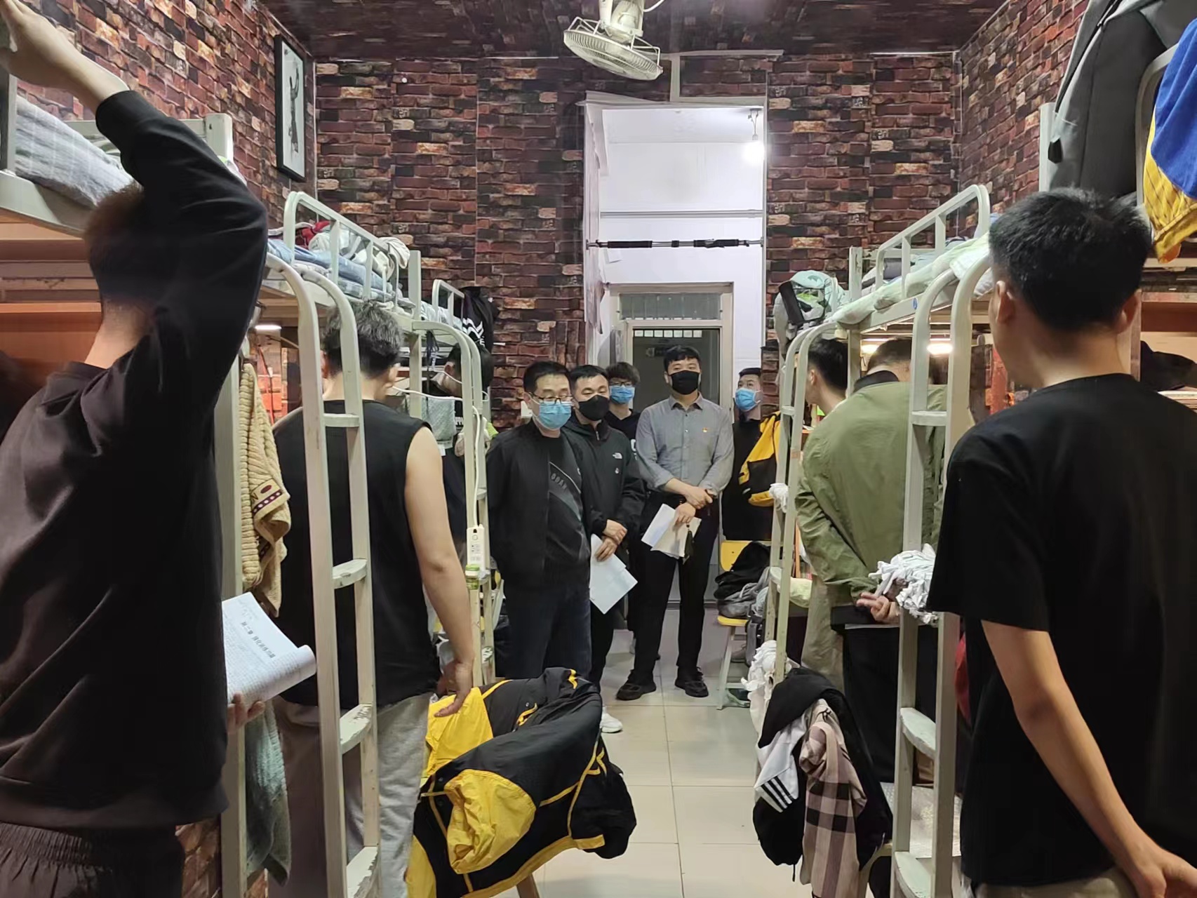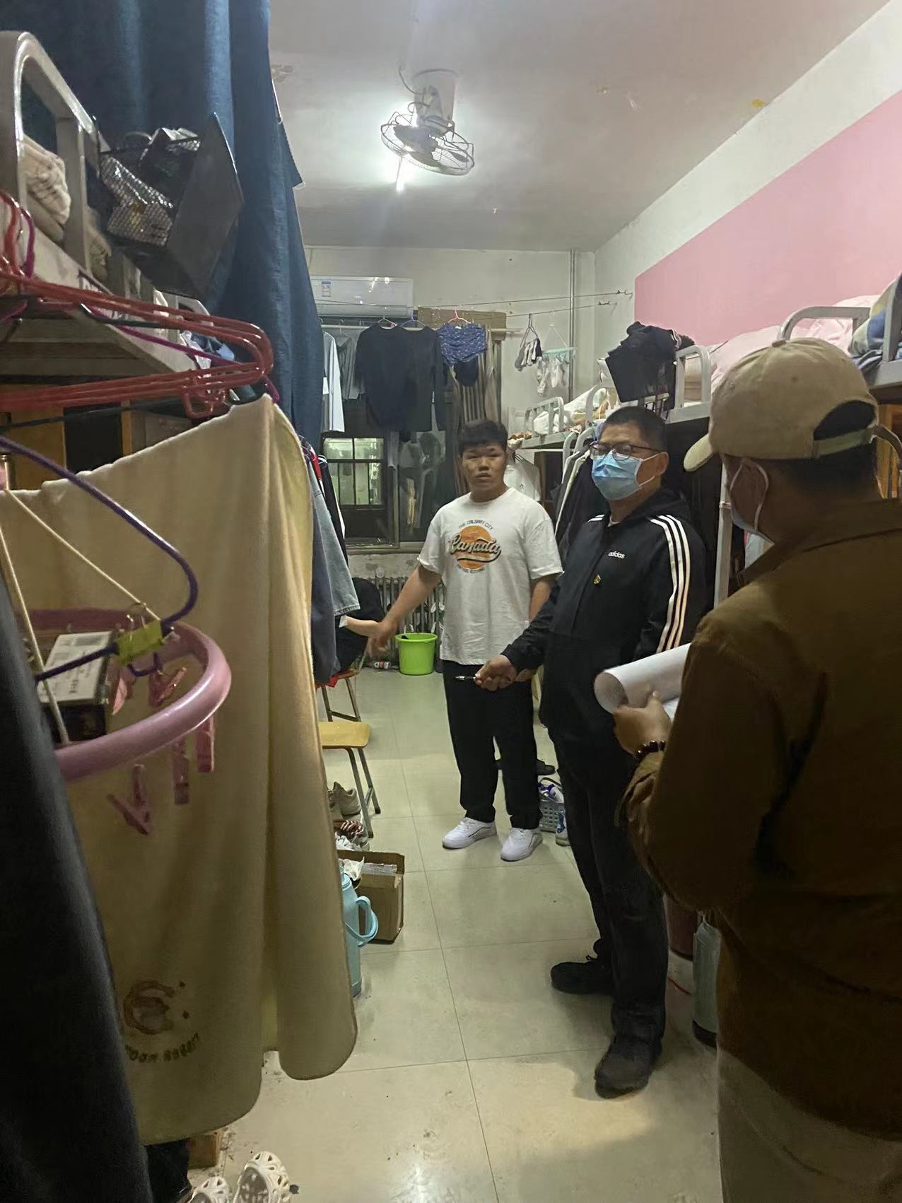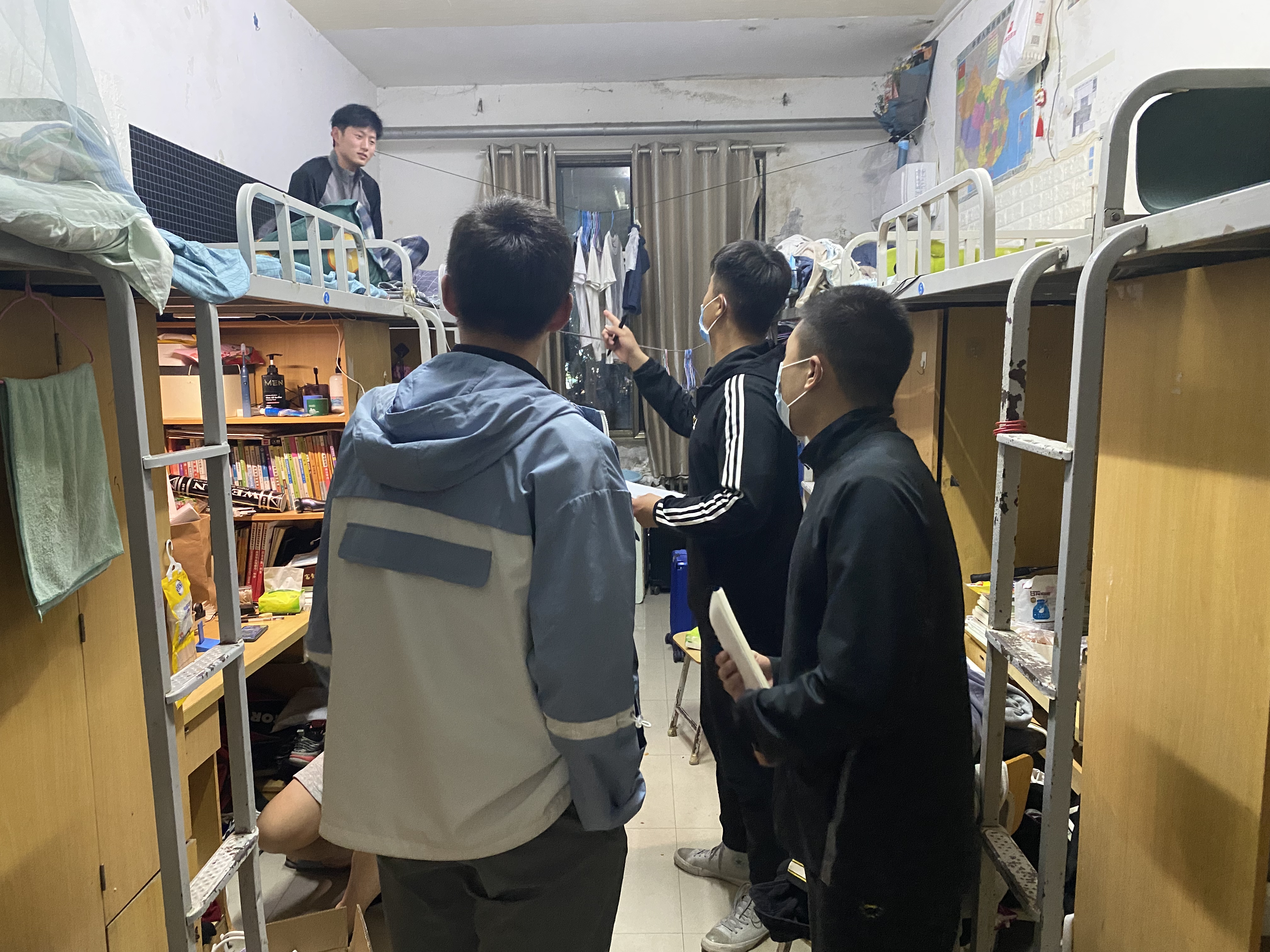 面对当前严峻复杂的防控形势,为深入了解封校期间公司员工的学习生活状态,按照学校相关部门的部署要求,扎实落实学校各项防控措施,秉持对师生健康安全高度负责的态度。5月8日晚上,伟德国际1949官网组织开展查寝工作,公司党委书记乔广礼、副经理蔡浩刚带队深入员工宿舍一线,对公司员工宿舍开展突击查寝工作。