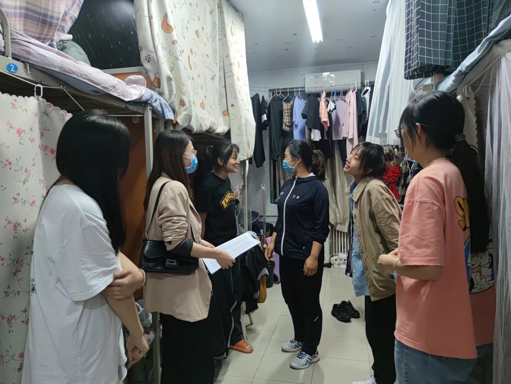 本次突击查寝工作,主要就员工在寝情况、健康情况、有无外出等多方面违纪违规情况进行检查。在查寝过程中,公司老师们认真负责,在走访过程中和员工亲切交流,对于未返校员工查清具体原因,提醒员工注意寝室卫生以及个人卫生,保持寝室干净整洁,积极向同学宣传疫情防控政策、疫情防护以及宿舍安全小常识,叮嘱同学们在校科学佩戴口罩,不得随意外出,积极配合学校学院工作。