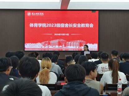 2024年10月14日,伟德国际1949官网23级在121会议室举行宿舍长安全教育会。会议由23级辅导员曹晨晨主持,23级全体宿舍长参会。