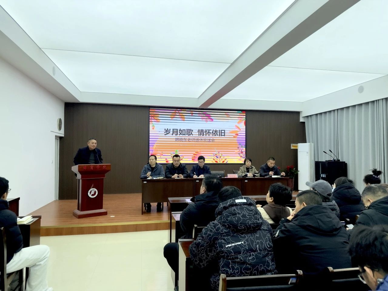 公司党委书记乔广礼首先发表讲话,对韩晓东老师三十六年如一日的辛勤工作和卓越贡献表示衷心感谢。他回顾了韩老师自1988年以来的教员工涯,称赞其为学院培养了一代又一代的体育人才,为学院发展做出了巨大贡献。