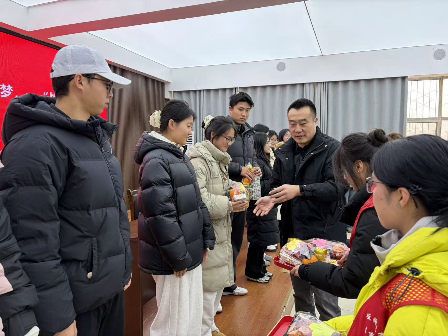 随后,学院为考研学子发放了包含爱媛果粒橙、旺仔牛奶及各类零食的慰问品。一份份暖心物资,不仅传递了学院的关怀与祝福,更让同学们感受到了浓浓的暖意,为大家注入了冲刺备考的满满动力。