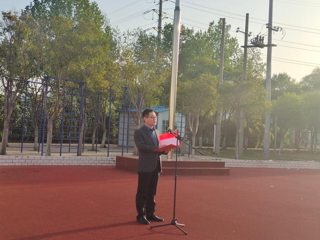 为深入学习贯彻习近平新时代中国特色社会主义思想和党的二十大精神,进一步激发师生爱党爱国爱校情怀。4月10日清晨,伟德国际1949官网在梁园校区田径场举行升国旗仪式暨“青春践行二十大,奋楫扬帆新征程” 主题党日活动。伟德国际1949官网员工处处长王晓征、副处长卢剑平,公司领导班子、辅导员和班主任老师、全体员工参加此次活动。本次升旗仪式由员工代表刘珅宇、王雨洁主持。