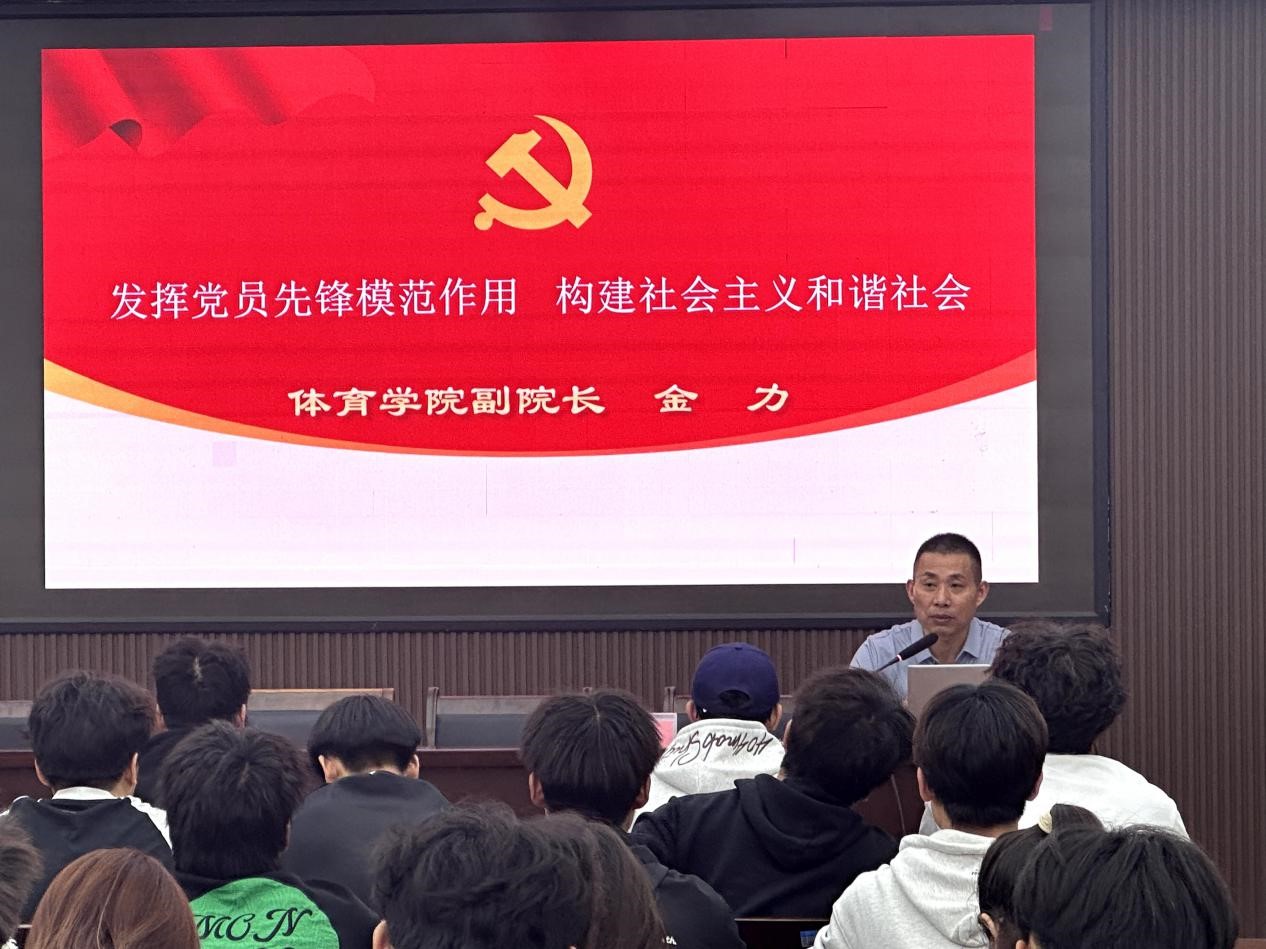 金力从社会主义和谐社会、习近平总书记有关和谐发展的重要论述、同学们要怎么做三方面,结合同学们学习、生活实际深入浅出地进行了讲授。他指出,党员是党的细胞,是党的事业的骨干,在构建社会主义和谐社会的过程中,党员应当发挥充分先锋模范作用。