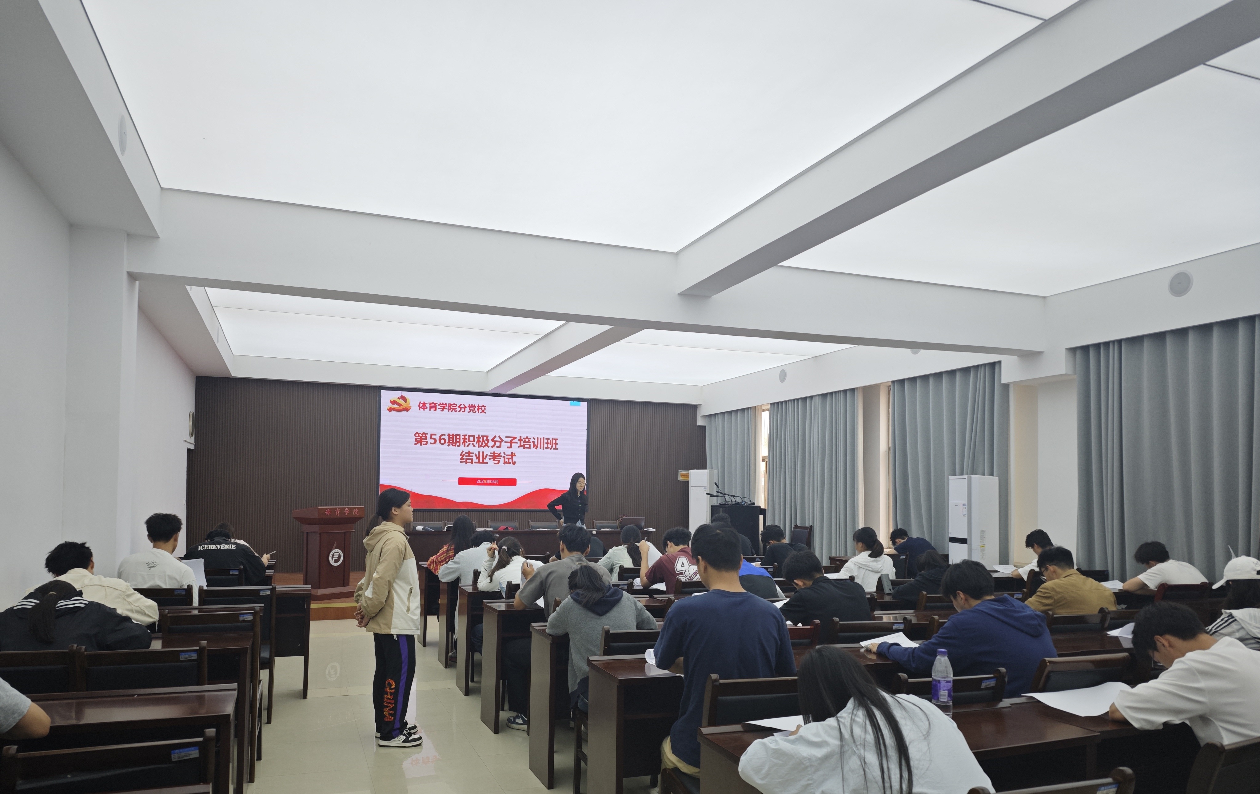 考试开始前,监考人员讲解考试注意事项、考场规则以及答题要求,要求考生端正态度、诚信作答。考试过程中,公司入党积极分子们认真作答,严格遵守考场纪律,充分彰显体育学员学子端正的态度和良好的知识储备。监考人员严格把控考场纪律,监督考场秩序,保证考试的顺利进行。