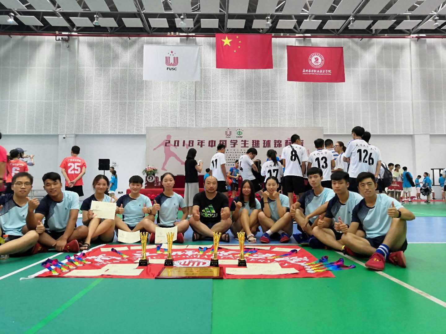 公司毽球代表队精选10人组成,主要由训练有素的两到三年的老队员参赛,参加了乙组和丙组二个赛组的比赛。经过激烈拼争,公司毽球代表队取得五项第一和团体总分第六名的优异成绩。黄旭、武承阳、潘奕天、李道畅、尚伟伟获大学组乙组男子三人赛第一名;黄旭、李道畅获大学组乙组男子双人赛第一名;李道畅获得大学组丙组男子单人计数赛第一名;姚丹获大学组丙组女子规定套路一等奖(第一名);李道畅获大学组丙组男子规定套路一等奖(第一名);刘豪杰、王寒笑、尚伟伟、李道畅获大学组丙组混合团体接力计数赛第二名;刘家欢、王寒笑、姚丹、刘豪杰、史慧芳获大学组乙组女子三人赛第三名;刘豪杰获大学组丙组女子单人计数赛第五名;刘家欢、王寒笑获大学组乙组女子双人赛第八名。