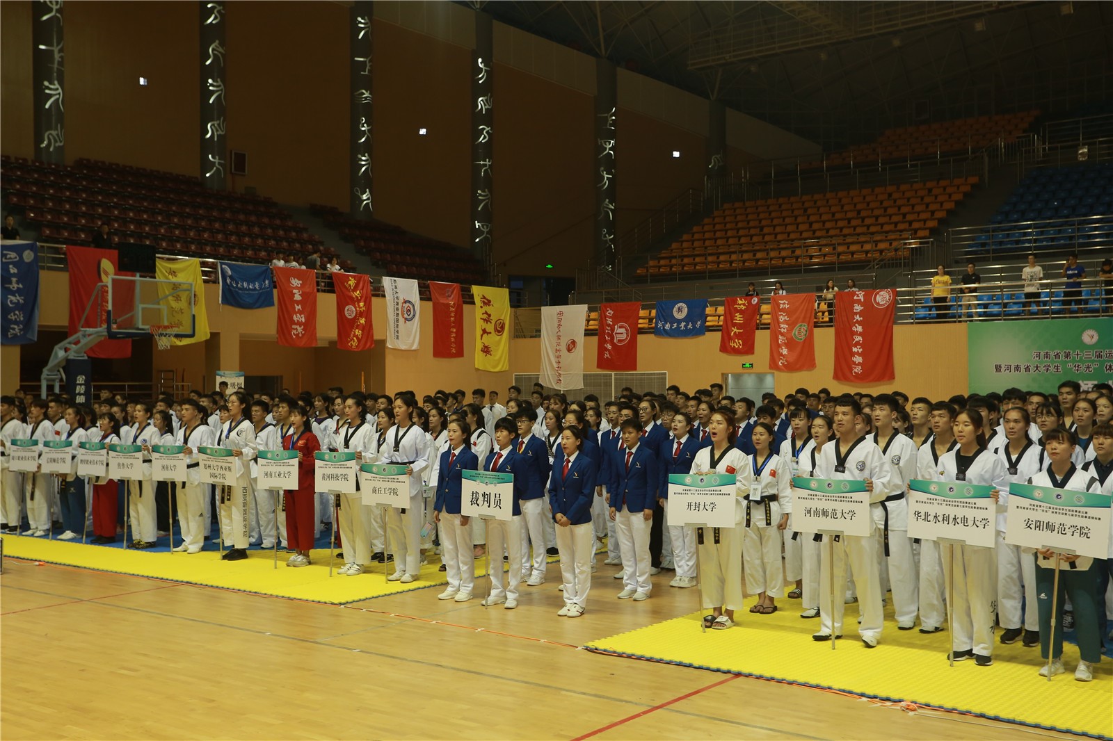 本次比赛由河南省教育厅、河南省体育局主办,河南省员工体育总会跆拳道协会执行,商丘工学院承办,商丘市城乡一体化示范区社会事务局、商丘市跆拳道协会等单位协办。来自河南省36所高校的389名运动员参加了比赛。