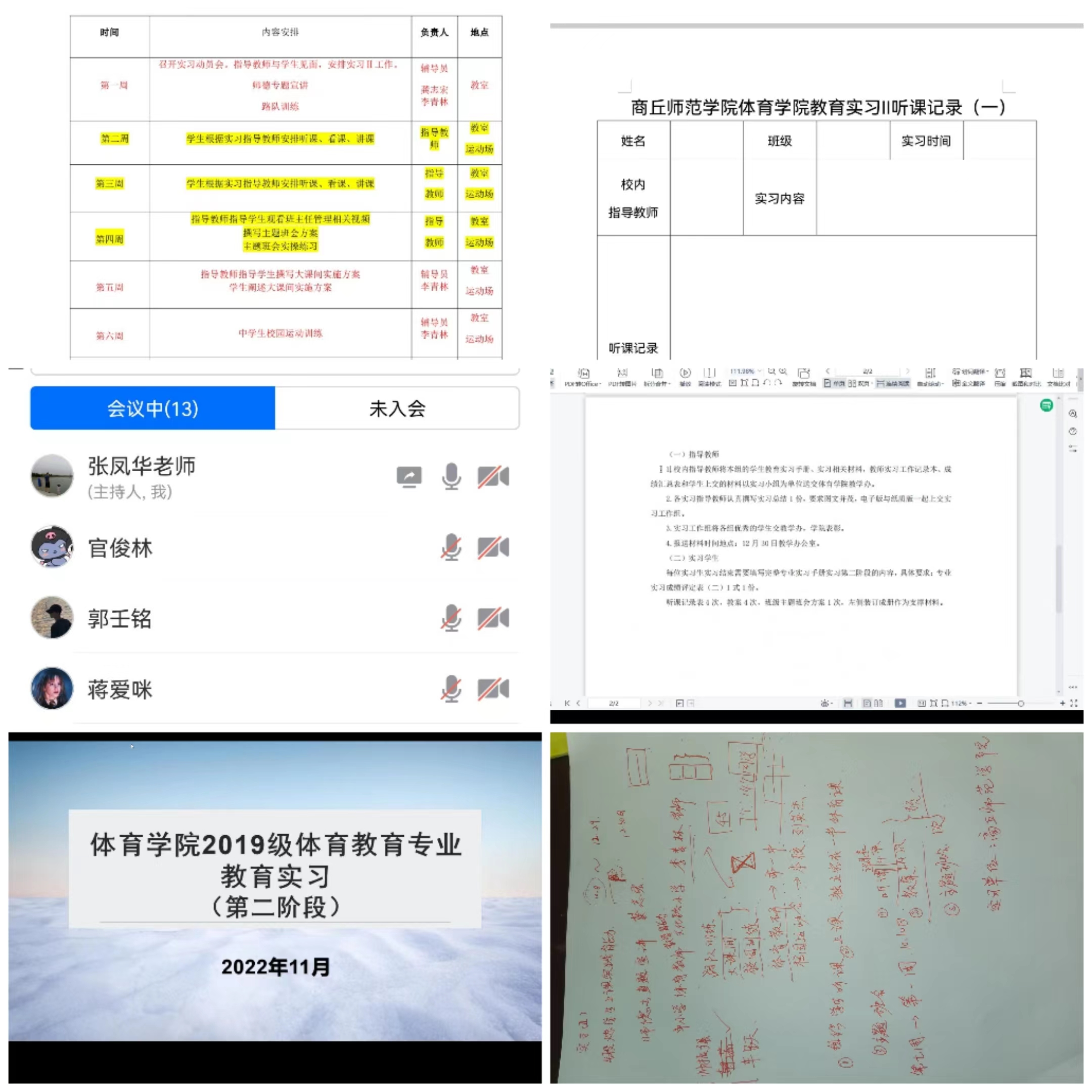 2022年11月19日晚上8:30,实习(Ⅱ)五组以腾讯会议形式开展第一次实习活动,本次实习活动有张凤华老师主持,2023届体育教育专业15名实习员工参加。