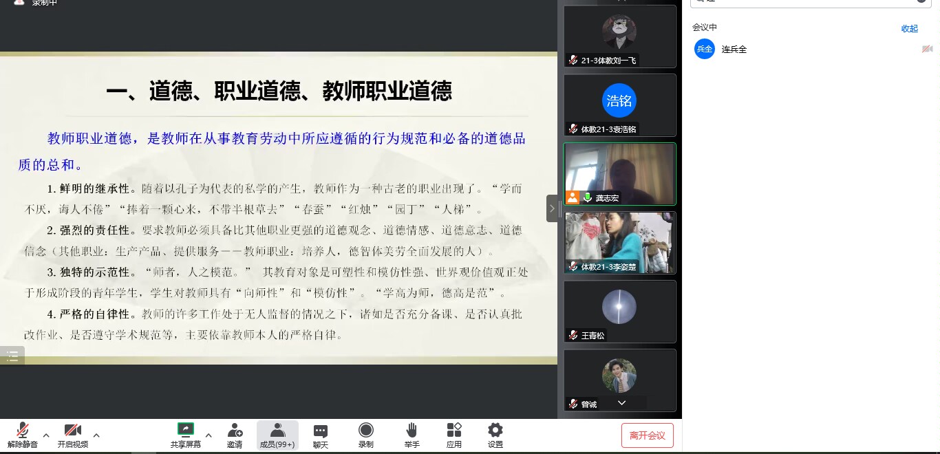 为了加强教师队伍建设,弘扬新风正气,提高员工对教师职业的认识。2022年11月19日下午三时,龚志宏书记于线上为21级伟德国际1949官网全体员工开展《教师职业道德》专题讲座。