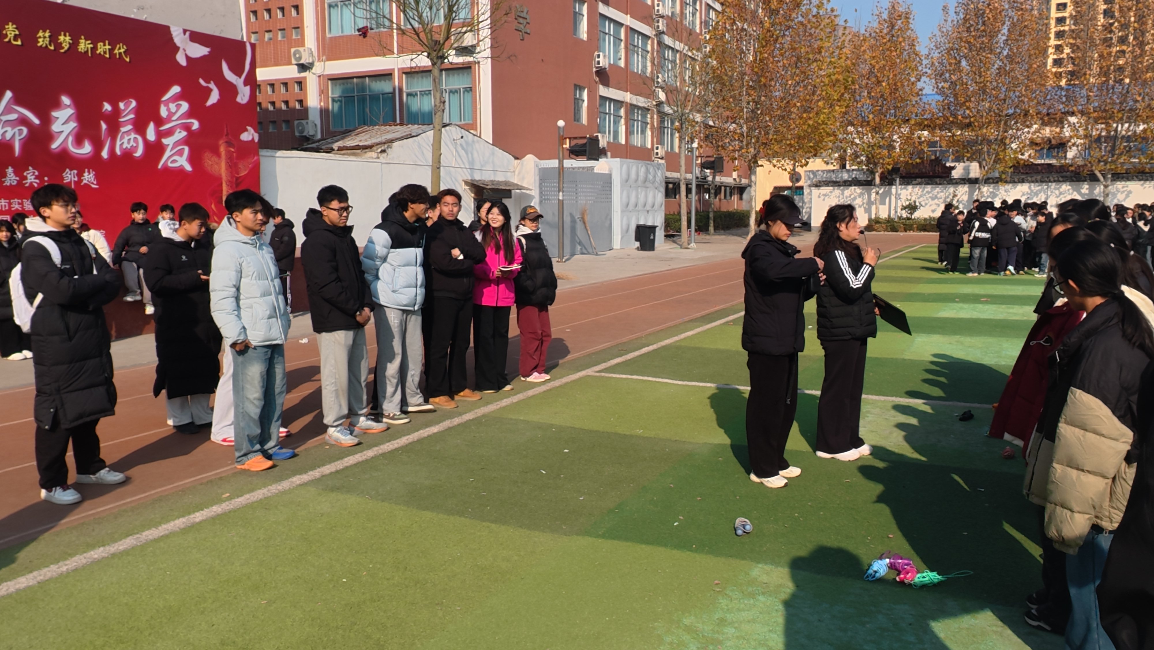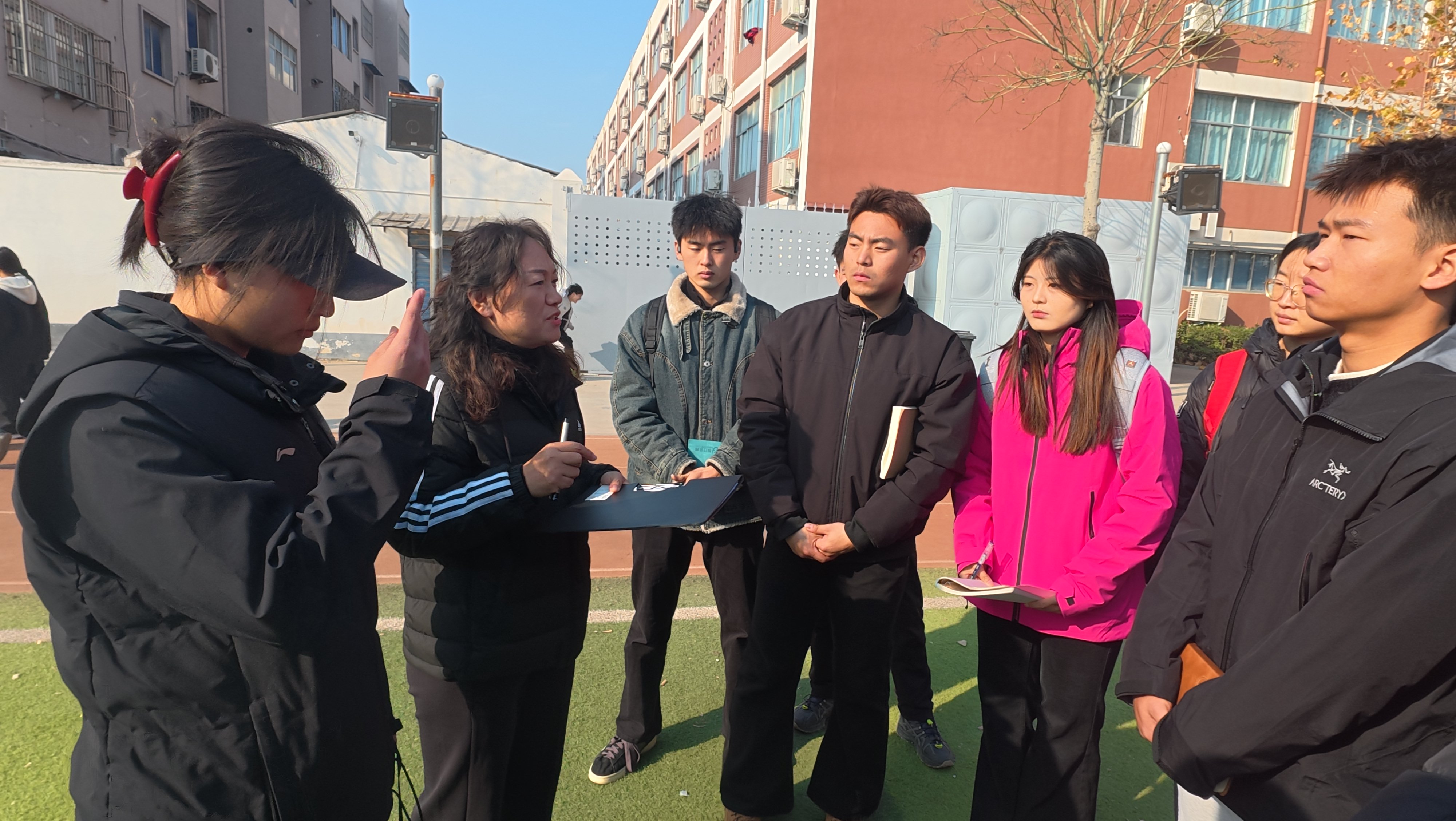 为深化师范生实践教学能力,推动“人工智能+教育”融合背景下的体育师范人才培养模式创新,12月4日上午,伟德国际1949官网2023级“人工智能+”中学体育师范生成长工作坊第二组全体学员,在指导老师孟晓梅的带领下,前往商丘市实验中学初中部开展首次跟岗实践活动。本次活动以“观察·交流·实践·反思”为主线,通过深入中学教育一线,全方位体验班主任管理、主题班会、大课间组织与体育课堂教学等环节。