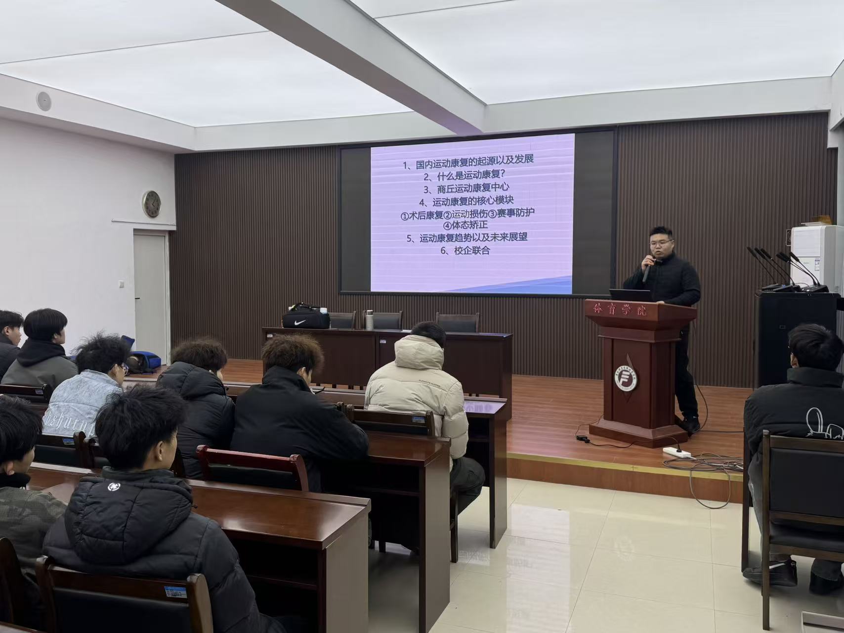 本次实习通过“理论讲座+实地调研+案例分享”相结合的方式展开。第一阶段安排了同学们学习了运动健康筛查中Par-Q问卷的使用、第二阶段吴春祥老师进行了《常见的脊柱问题的生发机制及康复方案》的专题讲座、第三阶段组织了两组员工代表分次前往商丘运动康复中心进行调研,学习了肩袖与前交叉十字韧带的运动损伤及康复、第三阶段邀请商丘运动康复中心的康复治疗师王耀辉来到伟德国际1949官网为同学们开展了《运动康复案例专题讲座》,为同学们讲解了典型且前沿的运动康复案例,介绍了运动康复行业行业发展趋势与市场需求、第五阶段由赴运动康复中心调研的员工代表为同学们开展了分享会。