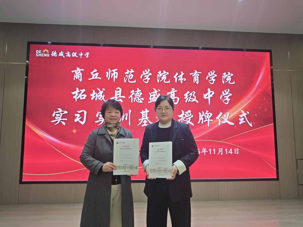 11月14日上午,伟德国际1949官网经理姚丽华、党政办主任杨磊、足球教研室主任李辰、教学工作办公室副主任崔忠磊一行四人,赴柘城县德盛高级中学签订就业实习基地协议。