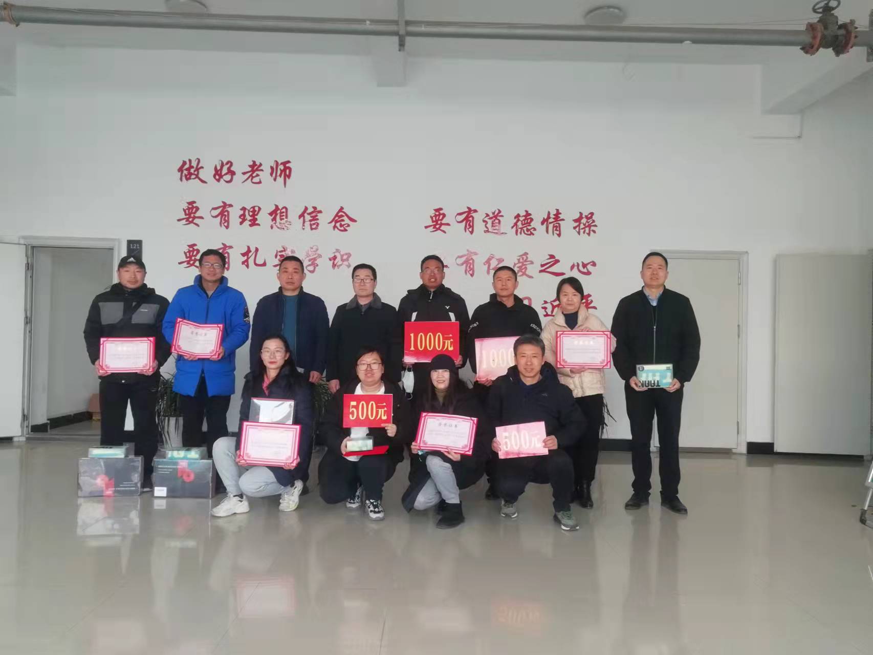 经理姚丽华部署新学期各项业务工作,并强调了学期初七大项具体任务,以及其他常规性具体工作任务。副经理金力部署了科研工作、场地场馆管理和安全、器材管理工作。副经理蔡浩刚详细解读了教务处、教评中心相关通知,并对开学上好网课思政第一课,做出要求。学院对2021年度教学、科研、竞赛等方面取得优异成绩的教科研团队、竞赛团队、教职工个人进行了表彰和颁奖,并合影留念。