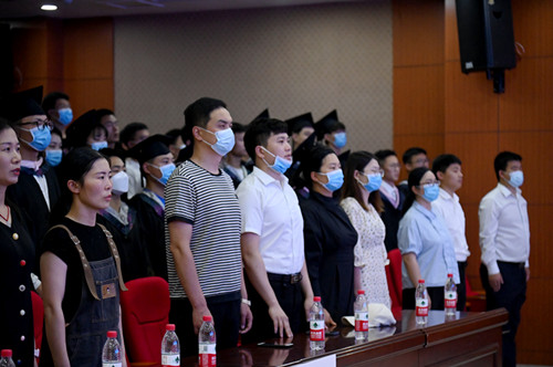 毕业典礼在庄严雄壮的国歌声中拉开序幕。