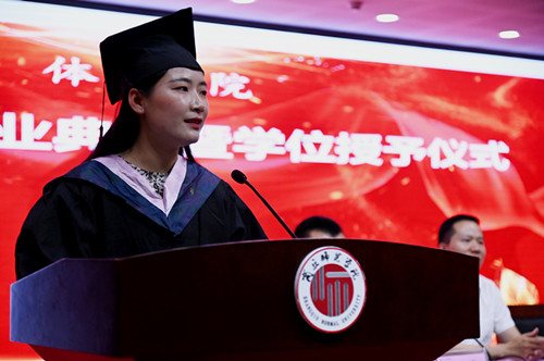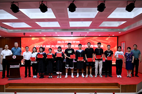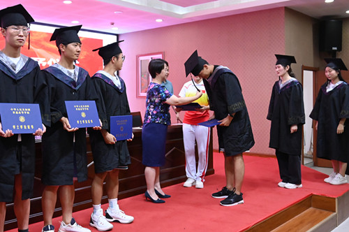 孟琛博宣读《伟德国际1949官网2022年学位评定委员会会议决议》,宣读“伟德国际1949官网2022届老员工体质测试优秀等级”获奖名单。随后,学院领导为毕业生们扶正流苏、颁发学士学位证书并合影留念。