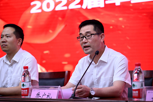 公司党委书记乔广礼致辞,向2022届全体毕业生圆满完成学业即将踏上人生新的征程表示祝贺,并向为学院发展倾注心血的各位领导、老师们、同学们表示崇高的敬意。鼓励毕业生们立胸怀家国之志,有信仰、有担当,志存高远,脚踏实地,努力在报效祖国的生动实践中实现自我价值。担民族复兴之任,以持之以恒的昂扬姿态,在激情燃烧的岁月里勇立潮头、磨砺本领。生逢盛世当不负,勇担重任踏新程!