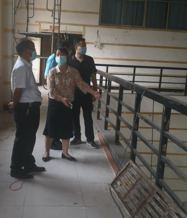 在篮球馆升级改造项目施工现场郭文佳听取了伟德国际1949官网经理姚丽华对项目施工情况的汇报,着重了解了项目工程施工过程中安全生产保障措施、安全检查、疫情防控等工作落实情况。对施工现场的高空作业安全防护、用火用电等易发生安全生产事故的重点环节进行了全面检查。