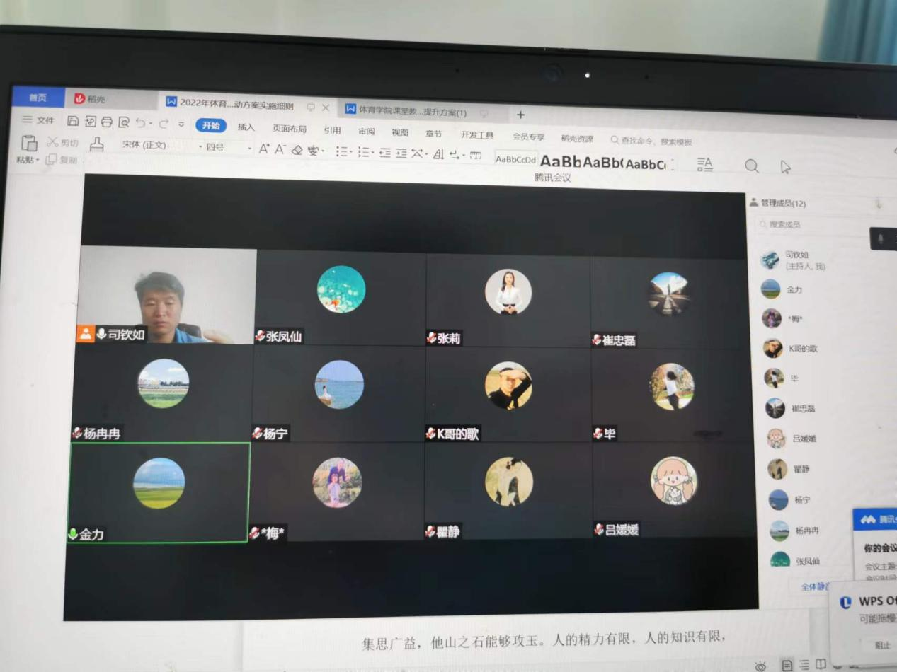4月27日上午体艺教研室召开了线上教研活动,教研室主任司钦如主持会议,全体老师参与了这次活动。在活动过程中,重点传达了学校和学院关于质量提升年的工作部署和具体工作安排,根据学院质量提升年活动方案的具体方案,体艺教研室结合教研室课程和教师队伍的实际现状,进行了针对性的要求和分工。