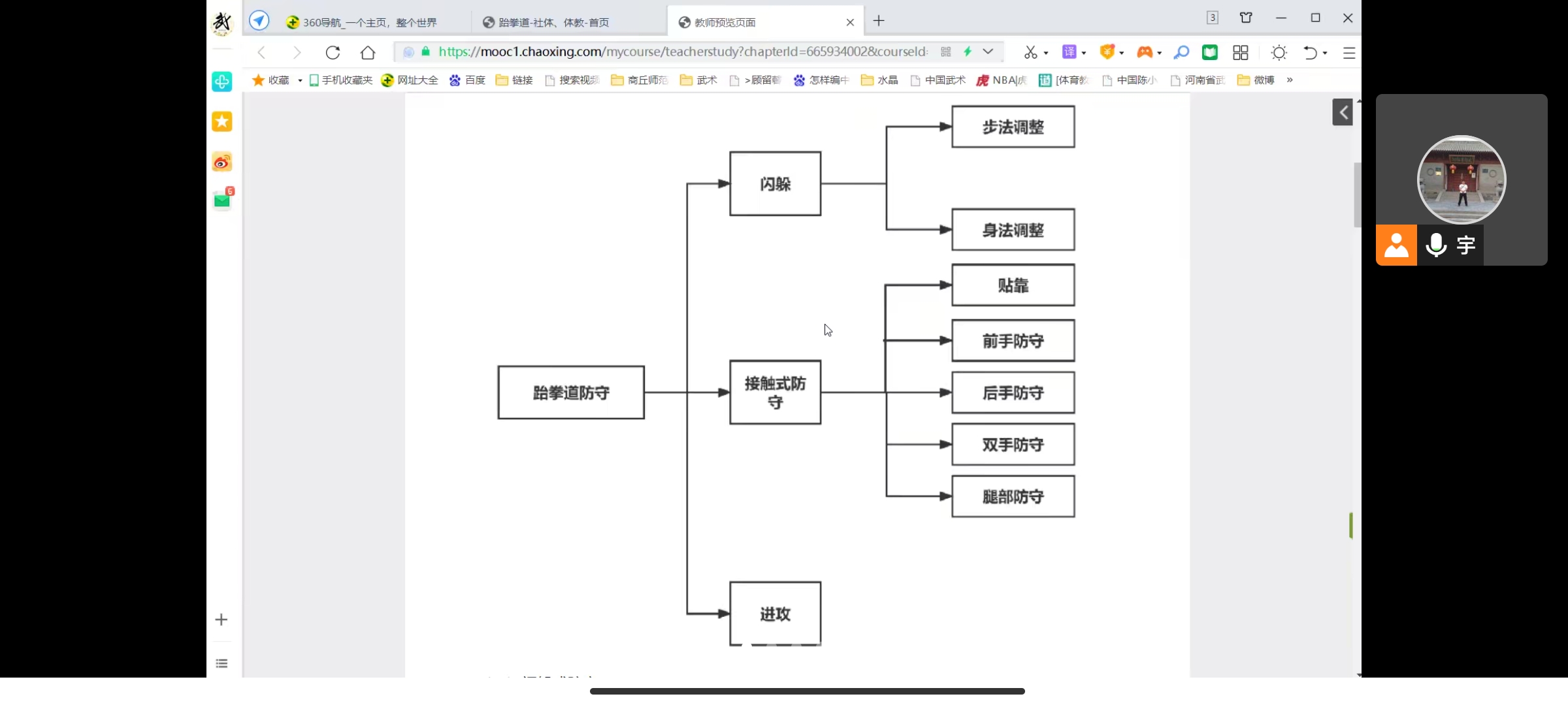 张振宇老师课前在学习通上发布跆拳道防守相关的课件和视频,课中用思维导图把知识系统化,课后及时总结和布置观看2022年世界跆拳道锦标赛视频作为巩固手段,向员工详细介绍跆拳道防守的相关知识。