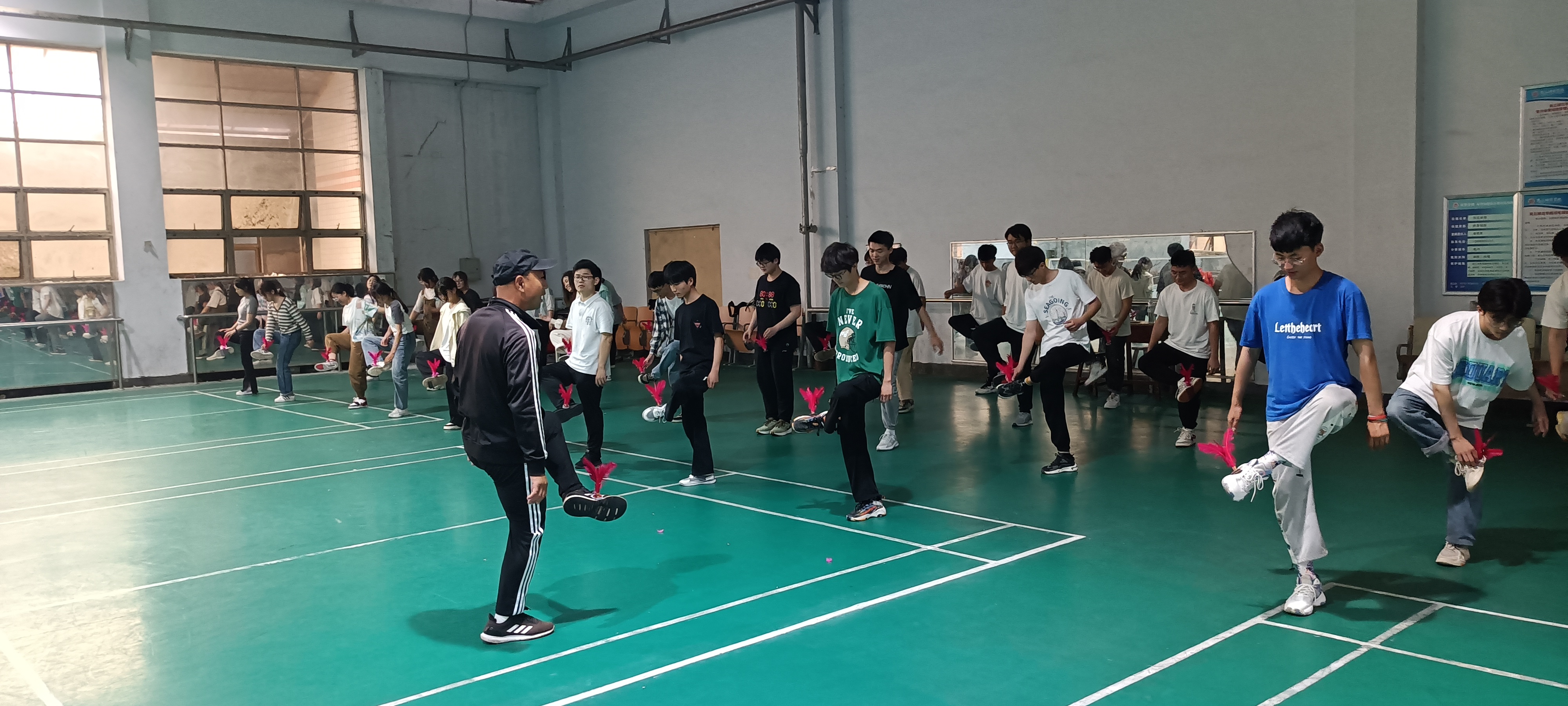 2023年5月30日(周二)下午第七节,伟德国际1949官网教学范式改革课程《体育公修毽球》公开课在梁园校区食息餐厅三楼羽毛球馆举行。本次公开课授课主题是毽球脚内高踢。