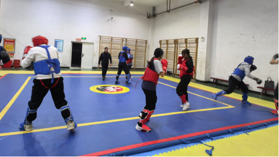 课前,王辉老师先让同学们在线上对“散打战术及实战要求”进行学习,通过预习使其初步掌握散打常见战术,课上以提问方式让员工阐述散打常见战术及在实战中的应用等情况进行检验,积极引导员工对散打战术与实战运用的思考。同时,对员工不易理解的战术及运用方法进行集中解答与示范。通过拳法实战、拳腿实战、以及拳腿摔实战对抗等方式,对所学战术内容以及拳腿摔技术运用进行检验,了解员工掌握散打技术的运用情况,帮助员工拓展思路,进一步强化散打战术的运用,提高员工实战能力。