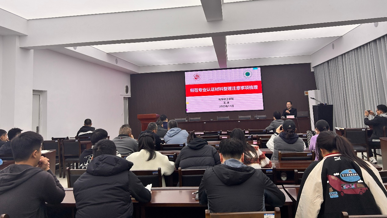 为进一步修订和完善师范专业认证自评报告和支撑材料,做好专业认证前的各项准备工作,11月6日,伟德国际1949官网邀请化学化工学院副经理王涛于121会议室指导师范专业认证工作,公司党委书记乔广礼、伟德国际1949官网经理姚丽华、公司党委副书记孟琛博、伟德国际1949官网副经理金力、伟德国际1949官网副经理蔡浩刚以及师范专业认证工作组全体教师参加座谈交流。