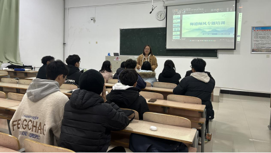 孟晓梅以丰富的教学经验和深刻的行业洞察力,围绕新时代背景下教师职业道德的重要性进行了深入讲解。她强调,在快速变化的社会环境中,作为一名合格的教师不仅需要扎实的专业知识,更要有高尚的职业道德和强烈的责任感。通过生动的案例分析,孟晓梅向同学们展示了如何在日常的教学工作中践行良好的师德师风。